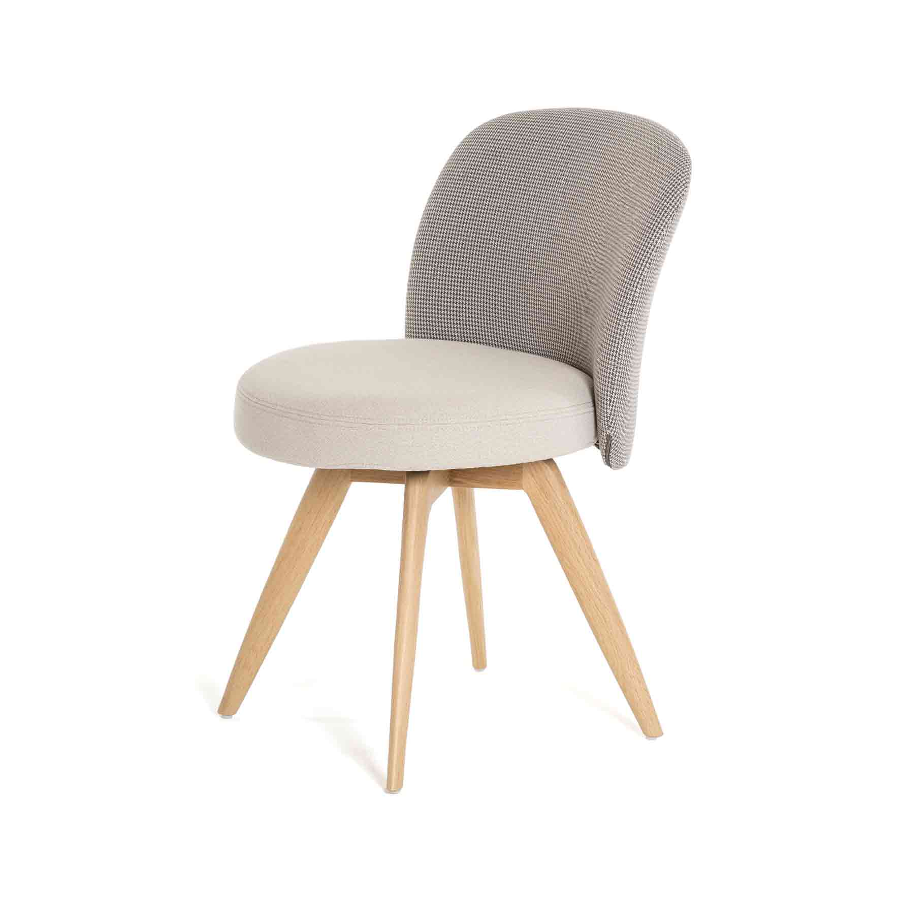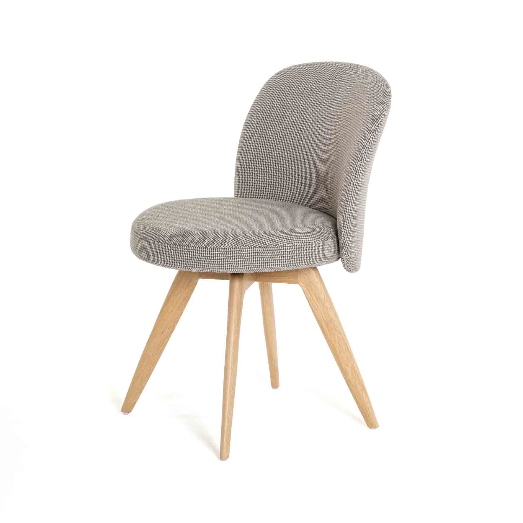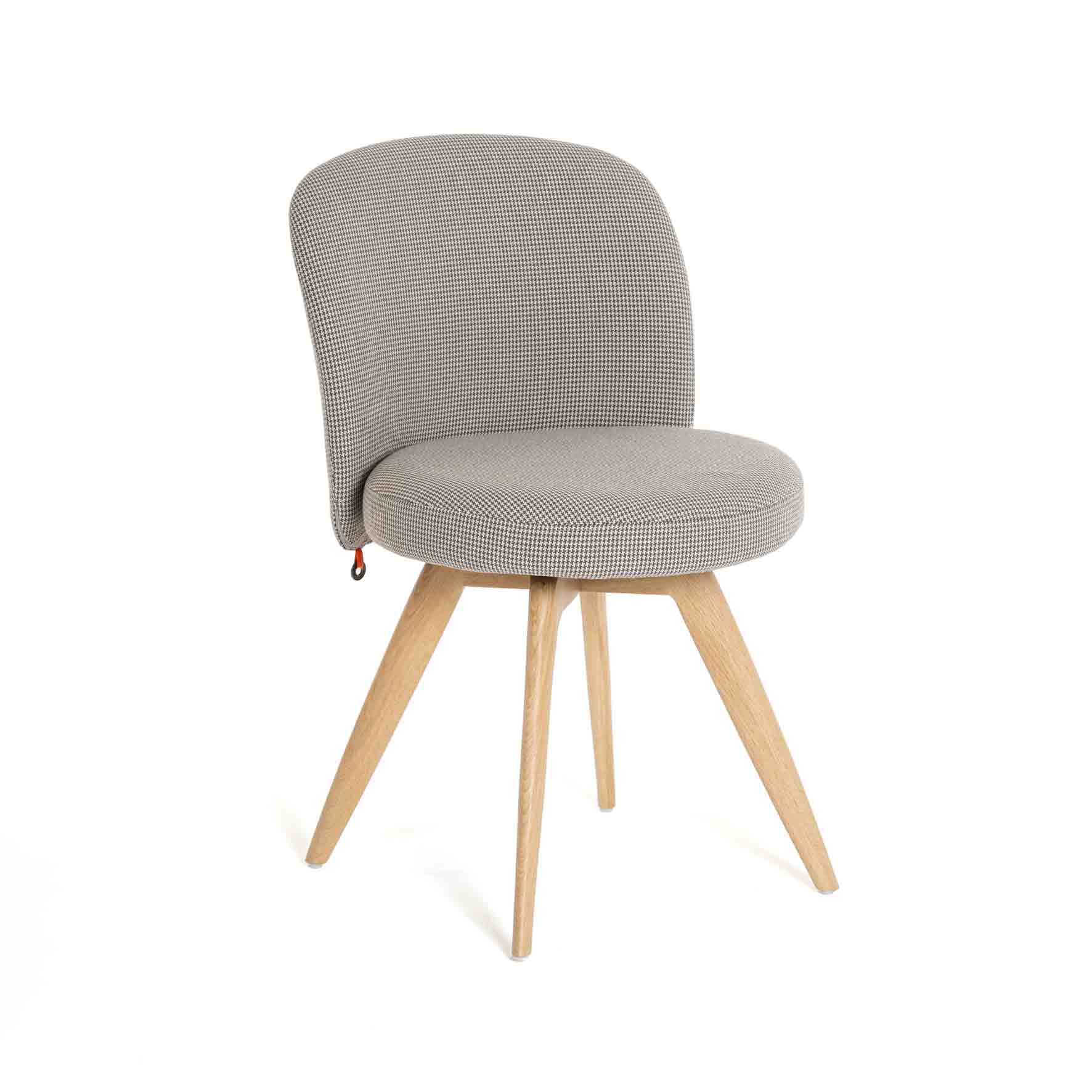 Cette version présente un piétement bois avec ancrage central. Il est disponible en hêtre, en chêne ou bien en noyer dans différentes finitions. Pour le revêtement, une multitude de choix s’offrent à vous en tissu ou simili.