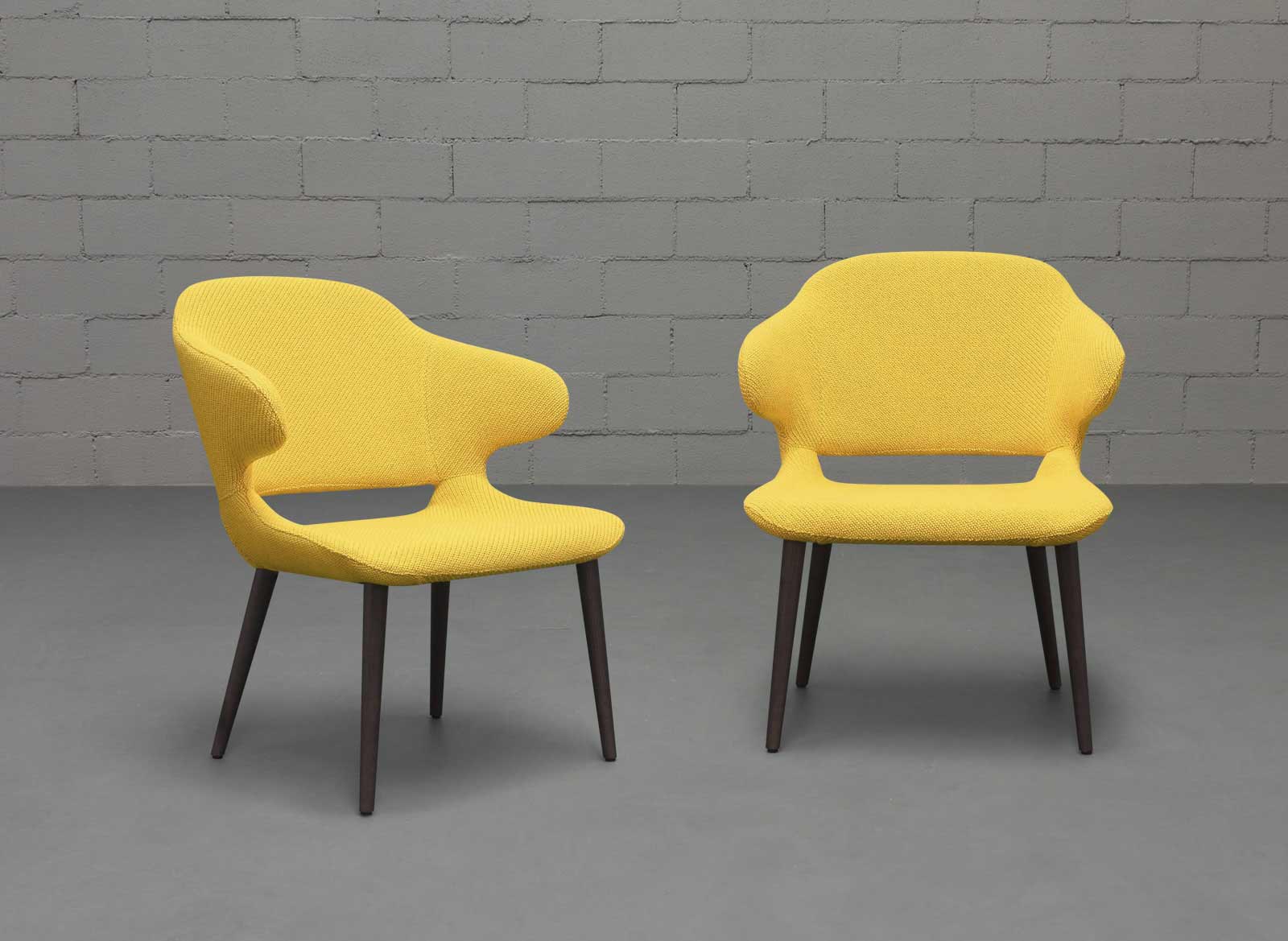 Design : CarlesiTonelli Fauteuil d'accueil pour hôtel et restaurant Matière(s): Bois, Revêtement