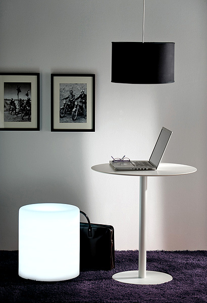 Tabouret lumineux seulement pour usage intérieur. En polyéthylène blanc transparent à la lumière. L’allumage de la lumière interne s’effectue par un interrupteur à pédale sur le câble d’alimentation. Equipé d’une ampoule 23W à basse consommation énergétique.